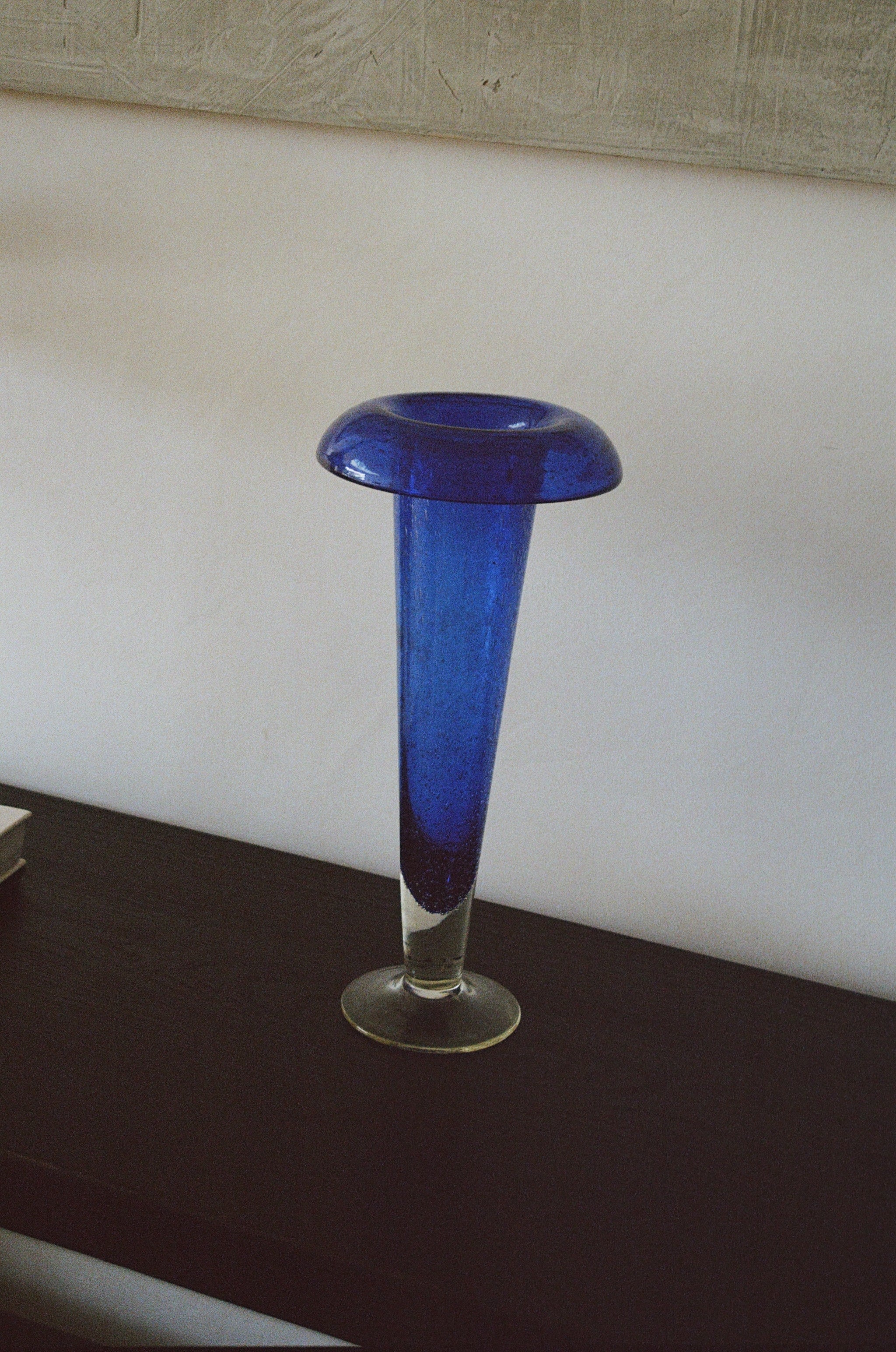 Like a poised figure standing gracefully in a room, this tall blue vase draws the eye with its striking, yet refined presence. The rich, deep blue hue adds an air of sophistication, while the sleek, elongated form gives it a timeless elegance. Whether filled with vibrant blooms or left empty as a sculptural accent, this vase makes a stunning statement on a mantel, shelf, or dining table. Its beauty is effortless, yet captivating—perfect for adding a touch of refined charm to any space.