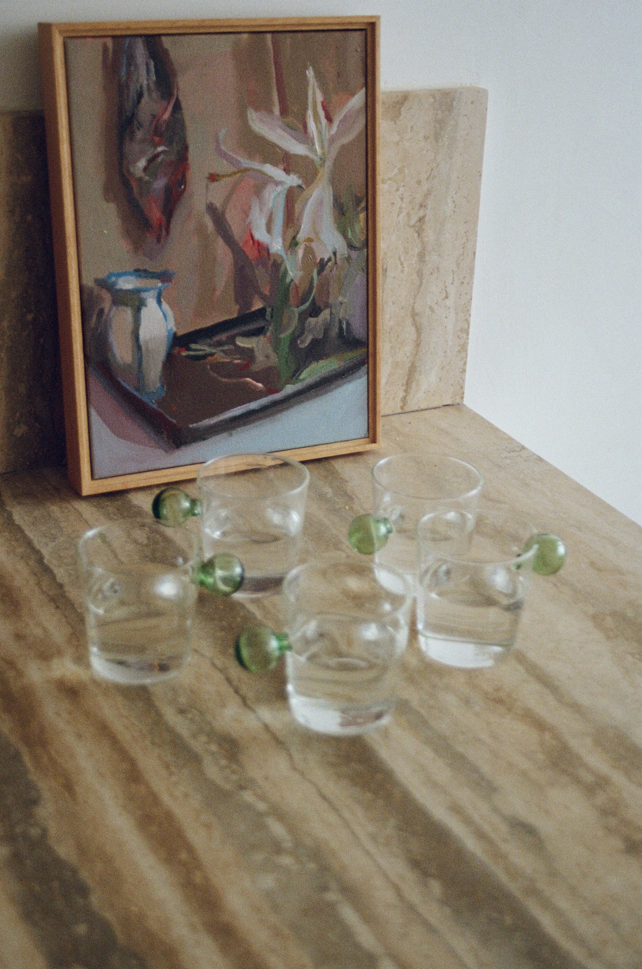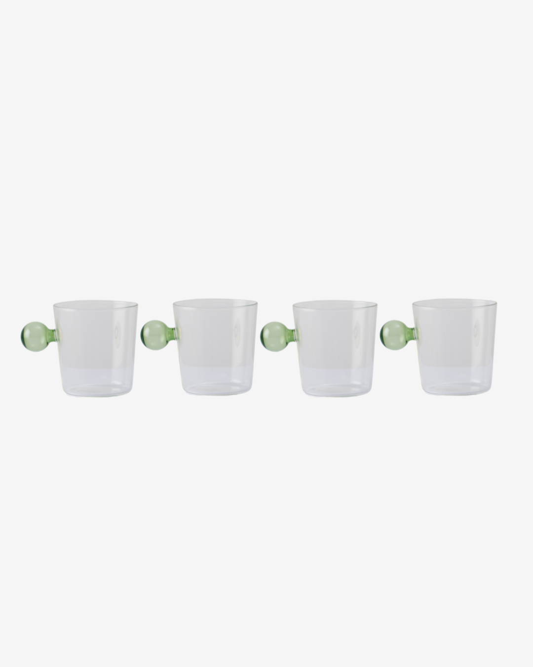 Beatrice is sensibly seductive, a woman who craves eternal hydration. These glasses are crafted for seductively sipping on water while observing the night's revelries. Our Beatrice water glasses are adorned with a dainty, green circular handle creating a truly eclectic feel to any table setting. Blending elegant form with functionality, this versatile set elevates any dining moment.