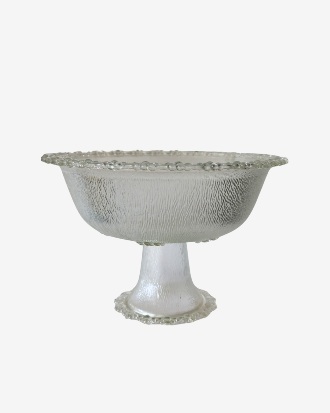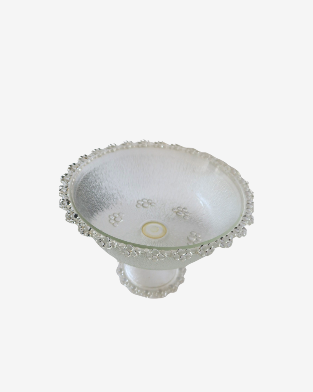 Introducing the Cerise Fruit Bowl — a statement piece that's as charming as it is functional! This stunning large bowl, attributed to Masserini Barocco, hails from the 1960s and brings a touch of vintage flair to any space. Made from molded and pressed glass, it features a delightful “bubbles” or “flowers” pattern that adds texture and visual interest, making it the perfect centerpiece for fruits, decorative items, or just as a work of art on its own. Whether you use it for serving, displaying, or simply admiring, the Cerise Fruit Bowl is sure to spark conversation and brighten up your home.