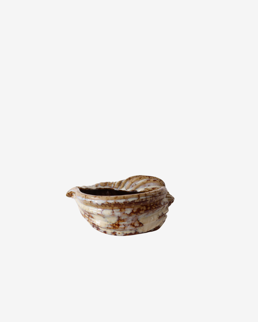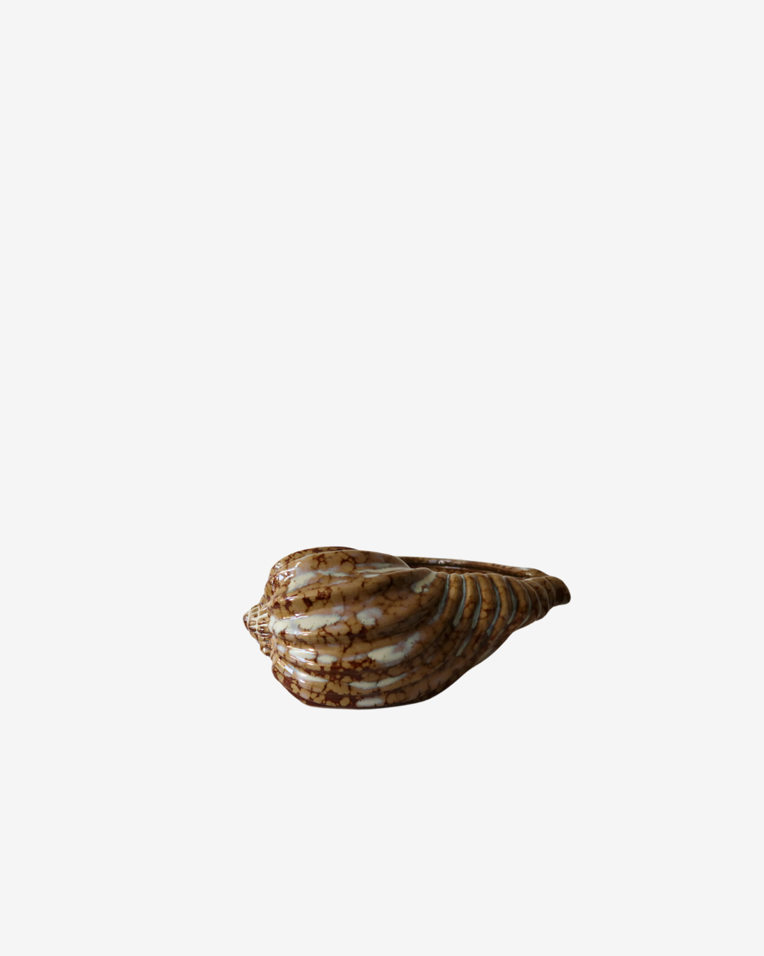 This vintage shell vase is a charming piece that effortlessly adds character to any space. Whether used to hold fresh flowers or simply displayed on a shelf, its unique design and soft, coastal-inspired shape make it a standout. The delicate curves and timeless appeal of this vintage find bring a touch of elegance to your home, while its history adds warmth and personality. Perfect for a gift to someone special.