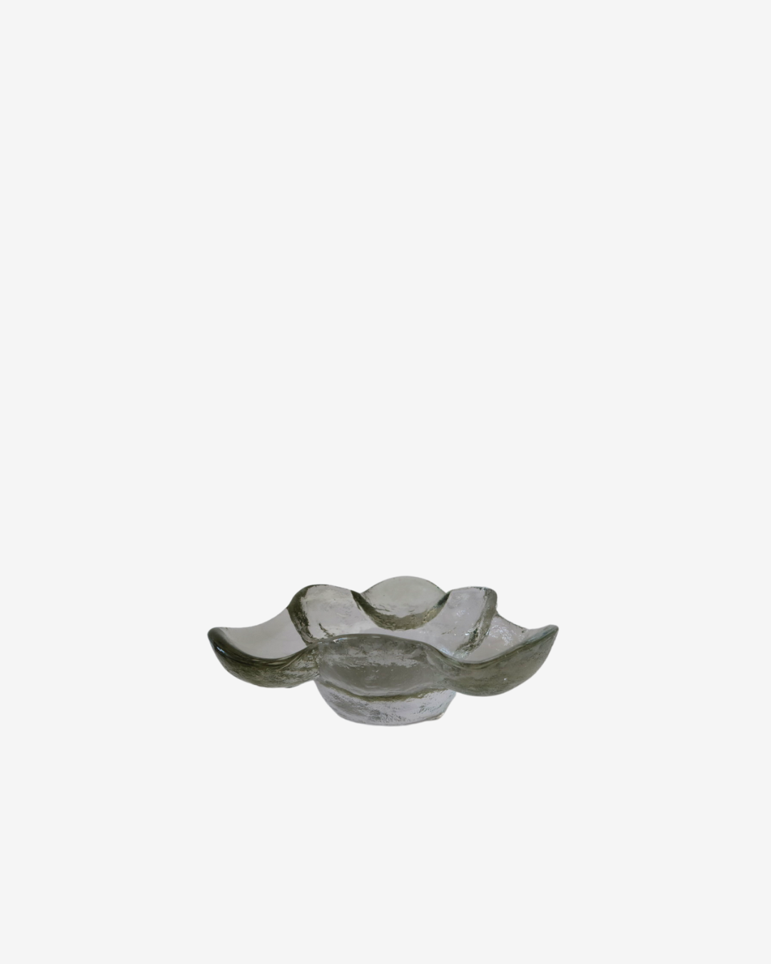 Enjoy the timeless allure of this exquisite clear glass Mid-century modern masterpiece by Pertti Santalahti, hailing from the artistic realm of Finland. Crafted with precision and finesse, this versatile piece seamlessly transitions between a captivating bowl and an enchanting candle holder, embodying the epitome of functional elegance.