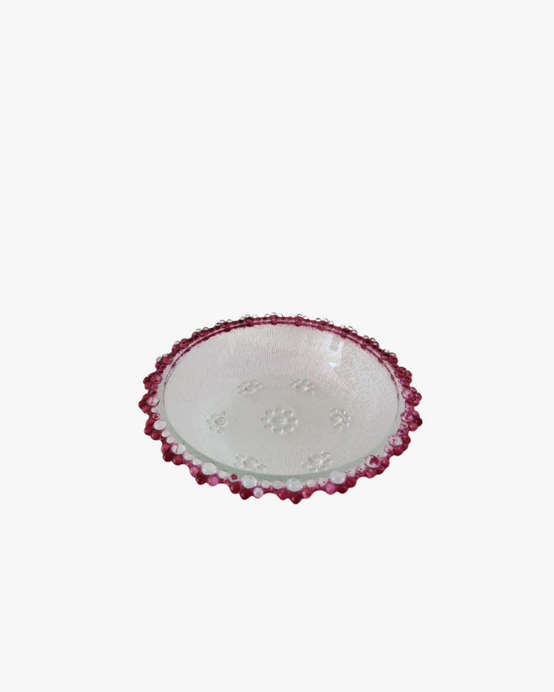 The Petal Bowl is a stunning vintage Masserini Barocco Italian glass piece, featuring an elegant pink bubble lattice design. This oval dinner plate or shallow bowl captures the essence of mid-century modern style, with its delicate, textured details and soft pink hue. A charming addition to any table or display, it brings a playful yet refined touch of Italian craftsmanship to your home.