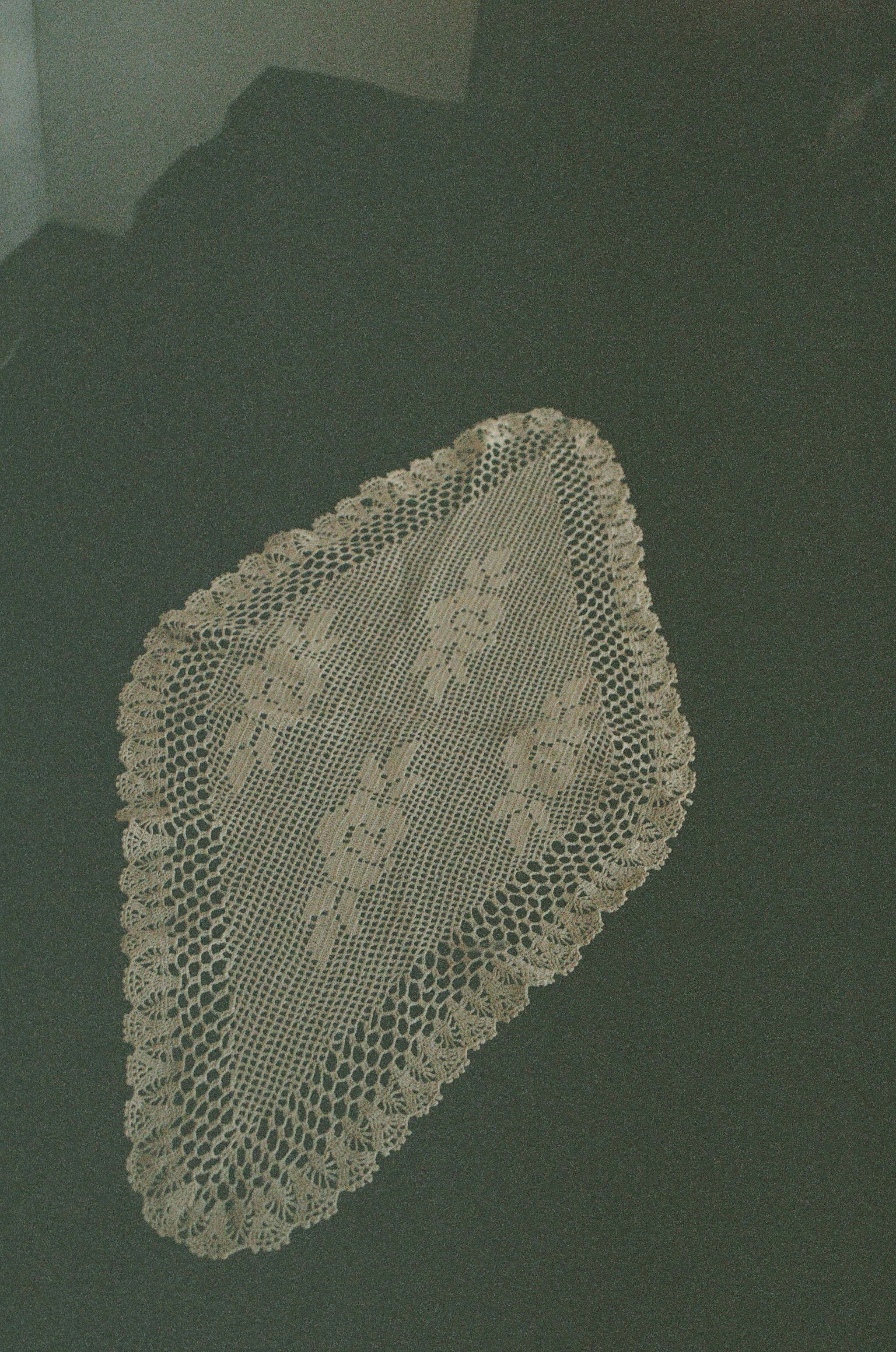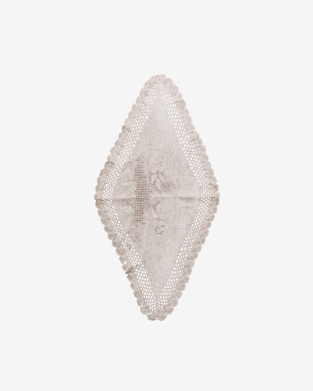 An elegant vintage table runner featuring hand-crocheted lace with delicate floral motifs and scalloped edging. Perfect for layering down the centre of a dining table, draping over timber, or styling a console for a touch of timeless romance.
