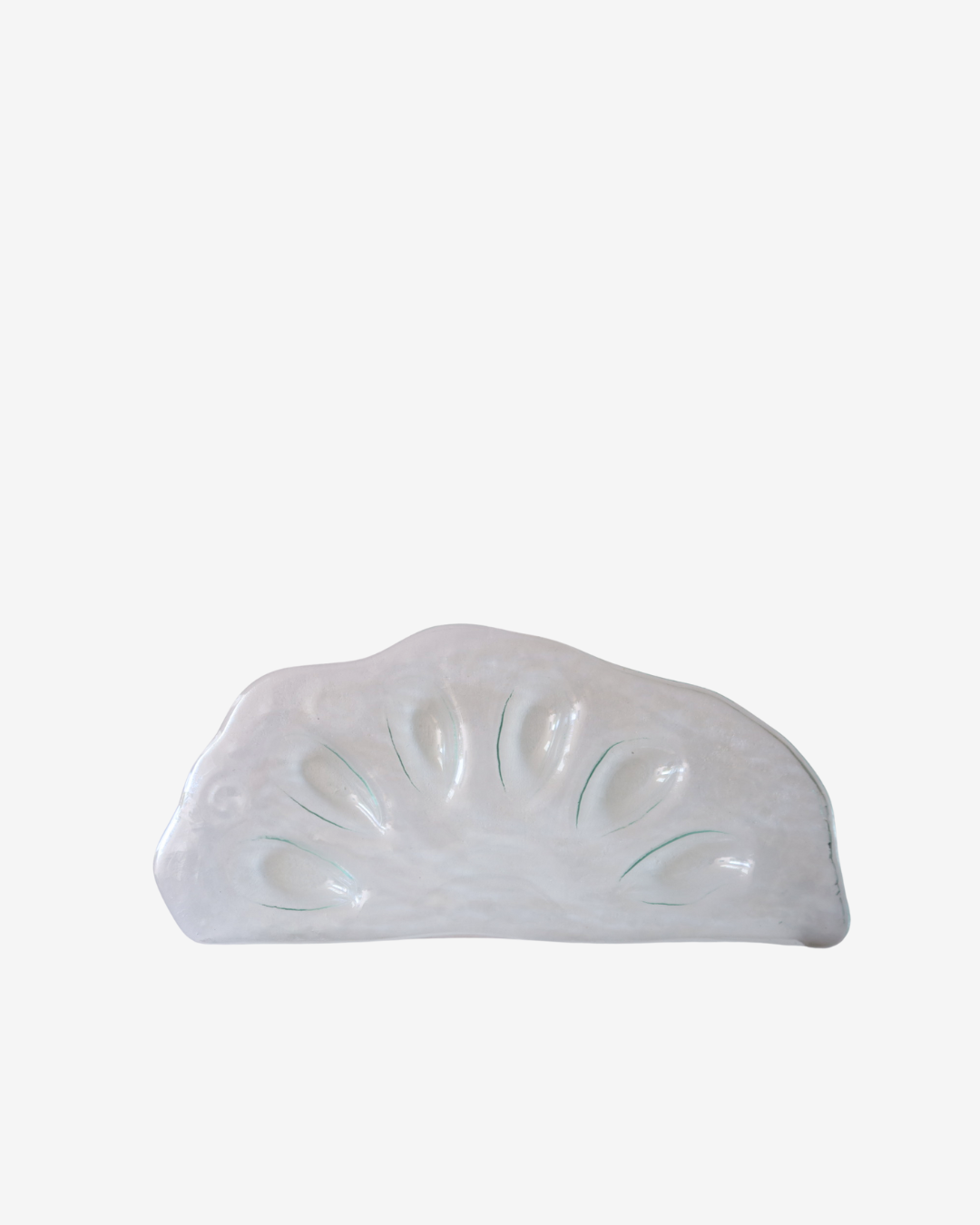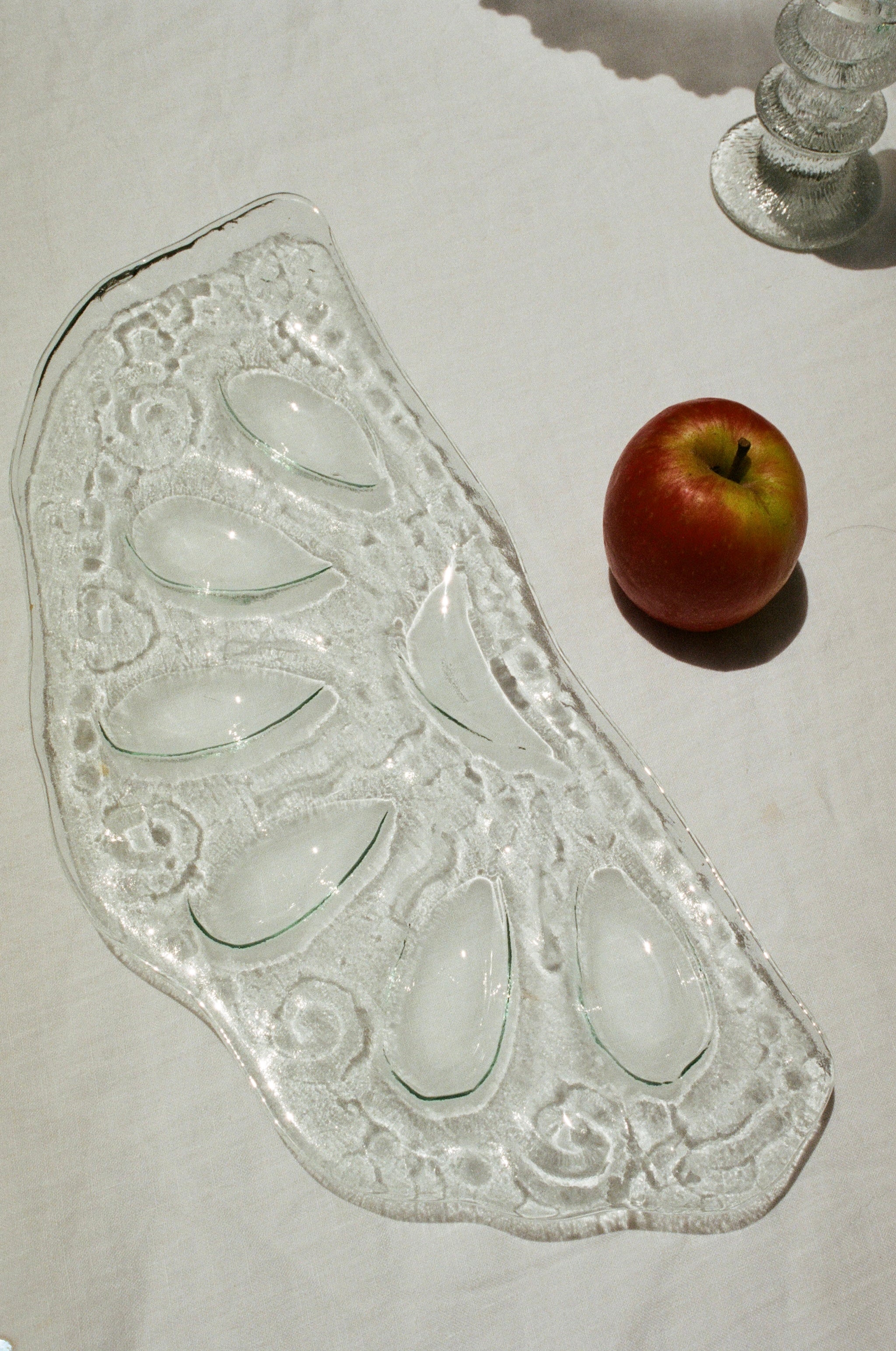 This Vintage Glass Oyster Plate is a stylish French treasure, showcasing a beautifully patterned design that adds elegance to any table. With six separate oyster-shaped compartments, it’s perfectly designed for serving fresh oysters, while the small central compartment is ideal for dipping sauce or lemon slices. The intricate vintage detailing and thoughtful design make this plate both a functional and decorative piece, perfect for elevating your seafood presentation at your next gathering.
